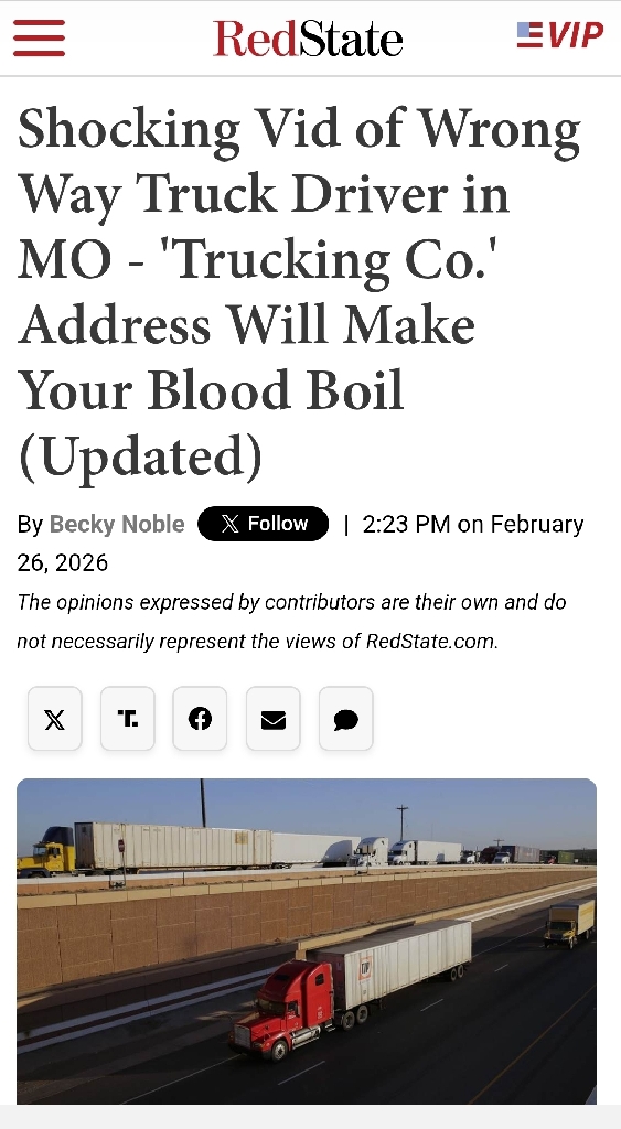 What's News? Wrong-Way Trucker Is A Somali Fraudster?? No Surprise... https://redstate.com/beckynoble/2026/02/26/shocking-video-of-wrong-way-truck-driver-in-mo-address-of-trucking-company-will-make-your-blood-boil-n2199599