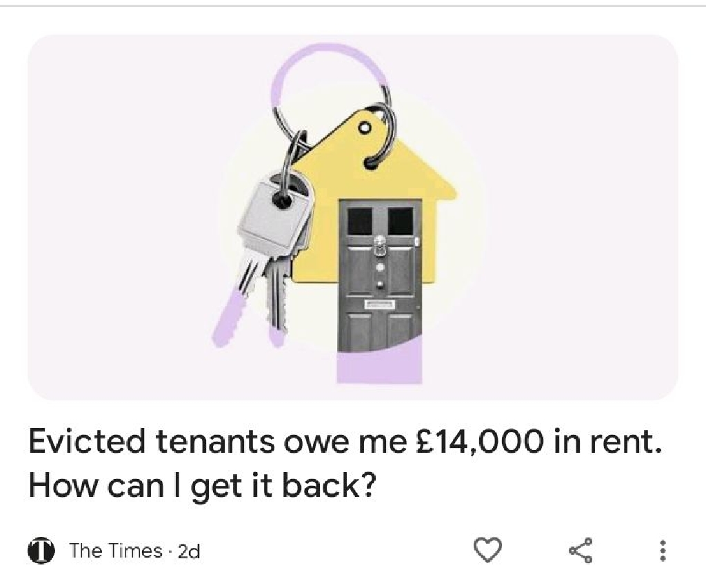 This is funny...As I'm being evicted for actually owing no money, it's the landlords owing Stone Eater Housing around £1000 in ground rent and wanting to take the car a s assets off me via their council gang warfare buddies !!! Been getting people to block driveways etc as well !!! xxx