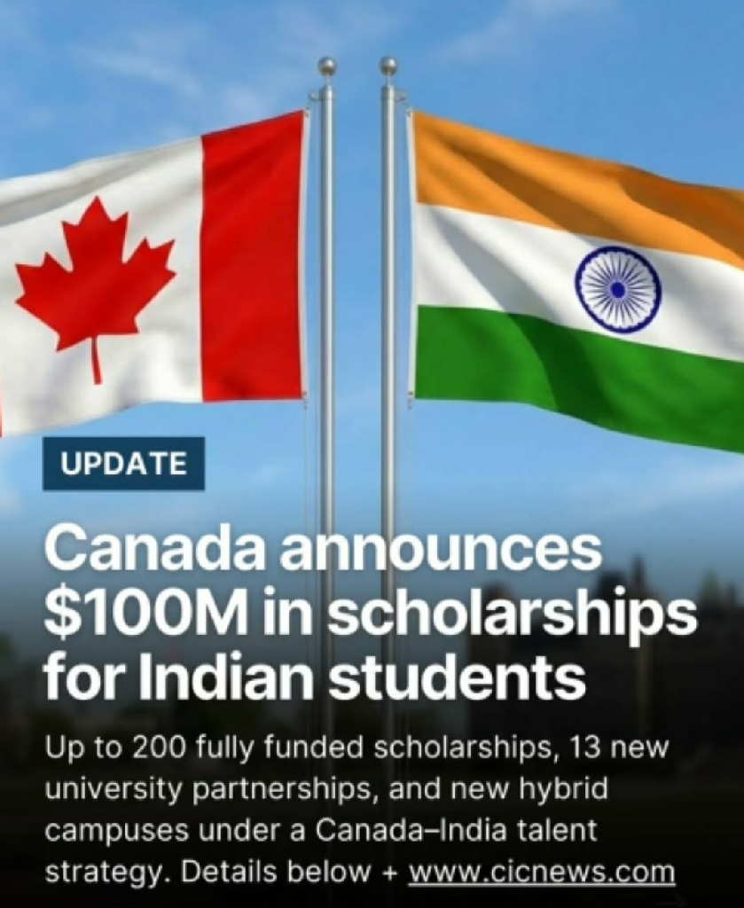 🇨🇦🇮🇳 Up to $100 million in scholarships has been announced for Indian students.
