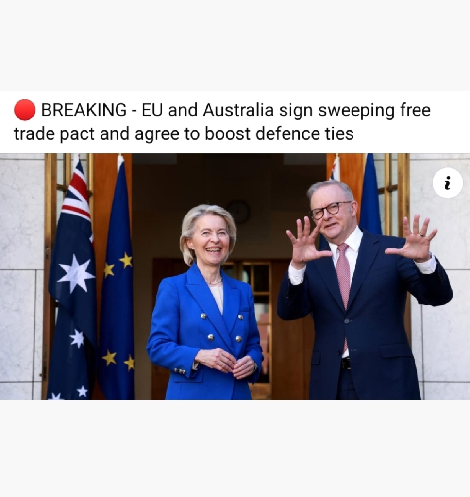 BREAKING - EU and Australia sign sweeping free trade pact and agree to boost defence ties ข่าวล่าสุด - สหภาพยุโรปและออสเตรเลียลงนามข้อตกลงการค้าเสรีครั้งใหญ่และตกลงที่จะเสริมสร้างความสัมพันธ์ด้านการป้องกันประเทศ