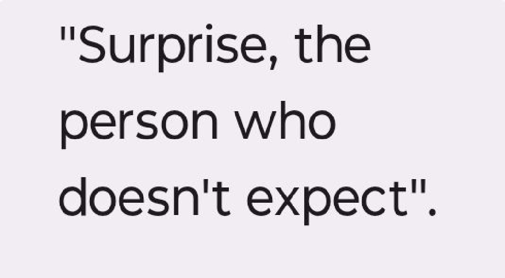 Make sure, they're nice surprises & not gangs with bailiffs, dodgy officers as well as judges, who have hidden agendas, with dodgy teaching assistants, teachers, doctors even nurses who've been plotting against you, making you out into being some hardened criminal peadophile drunken drug dealer". "MSee more...
