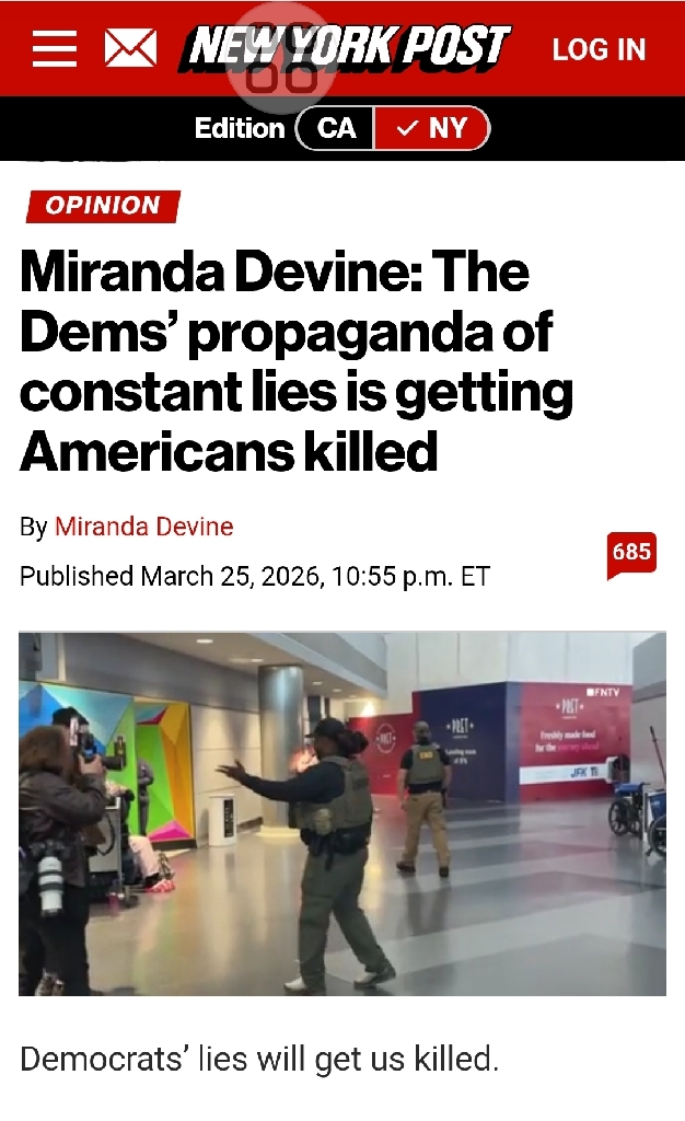 What's News? Evil Democrats Want American Citizens Dead... https://nypost.com/2026/03/25/opinion/miranda-devine-the-dems-propaganda-of-constant-lies-are-getting-americans-killed/